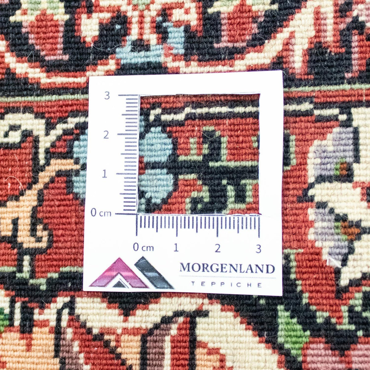 Ein Stück Orient für Zuhause! Dieser Bidjar Teppich stammt aus einer kurdischen Kleinstadt im westlichen Persien und ist bekannt für seine Strapazierfähigkeit und Robustheit durch seine besonders feste Knüpfung durch den traditionellen türkischen Knoten. Diese Technik macht den Teppich schmutzabweisend und garantiert seine Langlebigkeit: sein Flor wird mit einem Kamm so fest zusammengedrückt, dass er beinahe senkrecht nach oben steht. Beliebt ist das Herati-Muster als Design, es kommen jedoch auch Medaillon- und Blumenmusterungen vor.