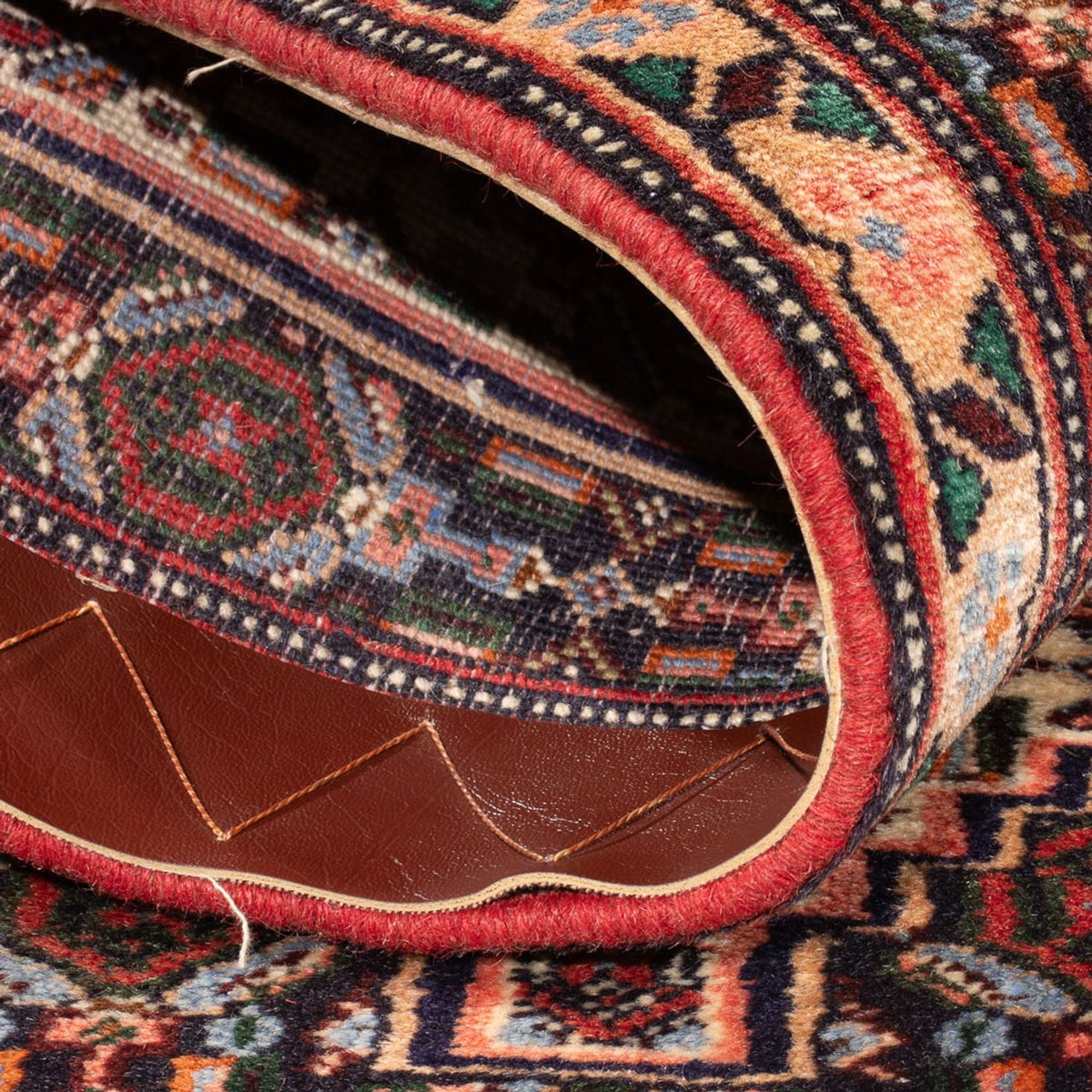 Der Senneh Teppich ist handgefertigt und besteht aus robustem Material. Er ist in der Provinz Kurdistan im westlichen Teil des Irans geknüpft worden und ist besonders langlebig und widerstandsfähig. Sein detailreiches Muster und seine belastbare Struktur machen ihn zu einem perfekten Wohnelement für stark frequentierte Räume wie Flur oder Wohnzimmer.