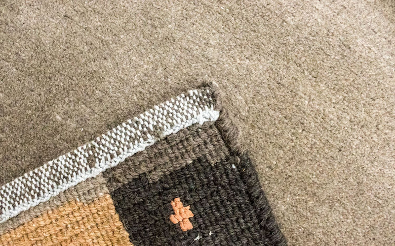 Für diesen Teppich wird ausschließlich handgesponnene Schafwolle verwendet. Durch die sorgfältige, manuelle Verarbeitung bleiben die natürlichen Eigenschaften der Wolle optimal erhalten: Sie ist robust, elastisch und besitzt eine angenehme Weichheit, die man bei jedem Schritt spürt.