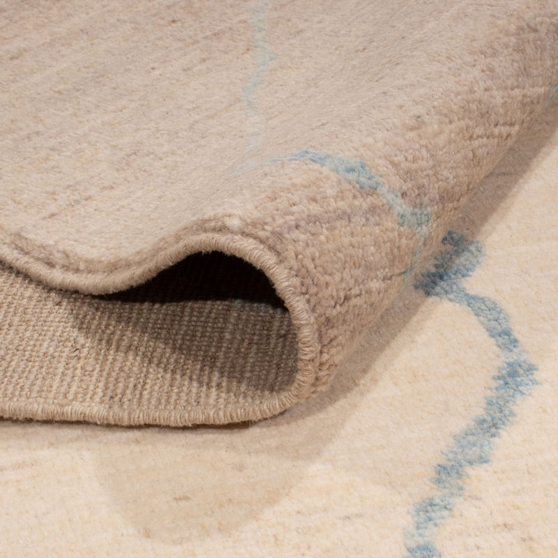 Die handgesponnene Wolle verleiht dem Teppich eine einzigartige, leicht strukturierte Oberfläche mit dezentem Glanz – ein Zeichen echter Handwerkskunst. Gleichzeitig wirkt das Material temperaturausgleichend, schmutzabweisend und sorgt für ein behagliches Raumklima.