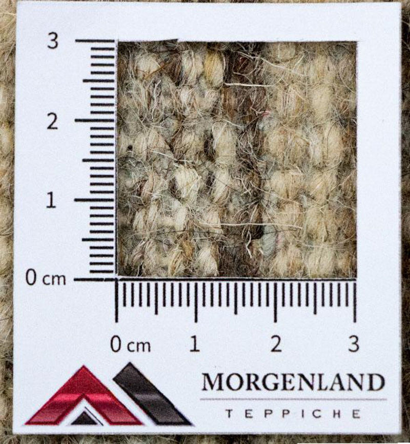 Für diesen Teppich wird ausschließlich handgesponnene Schafwolle verwendet. Durch die sorgfältige, manuelle Verarbeitung bleiben die natürlichen Eigenschaften der Wolle optimal erhalten: Sie ist robust, elastisch und besitzt eine angenehme Weichheit, die man bei jedem Schritt spürt.