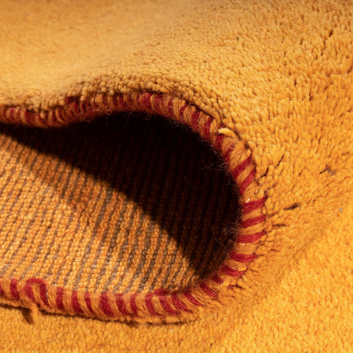 Die handgesponnene Wolle verleiht dem Teppich eine einzigartige, leicht strukturierte Oberfläche mit dezentem Glanz – ein Zeichen echter Handwerkskunst. Gleichzeitig wirkt das Material temperaturausgleichend, schmutzabweisend und sorgt für ein behagliches Raumklima.