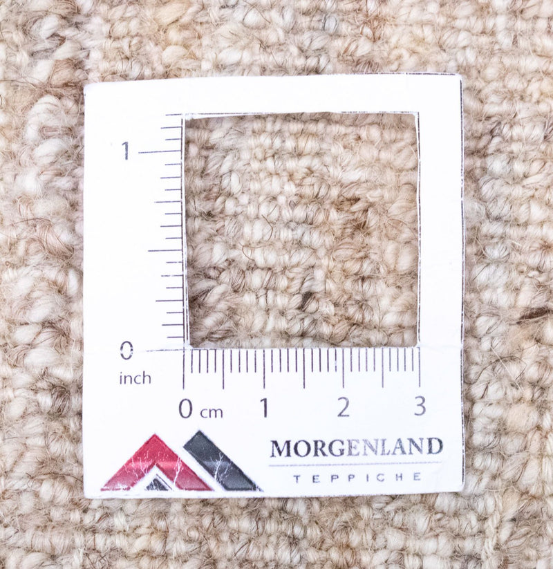 Für diesen Teppich wird ausschließlich handgesponnene Schafwolle verwendet. Durch die sorgfältige, manuelle Verarbeitung bleiben die natürlichen Eigenschaften der Wolle optimal erhalten: Sie ist robust, elastisch und besitzt eine angenehme Weichheit, die man bei jedem Schritt spürt.