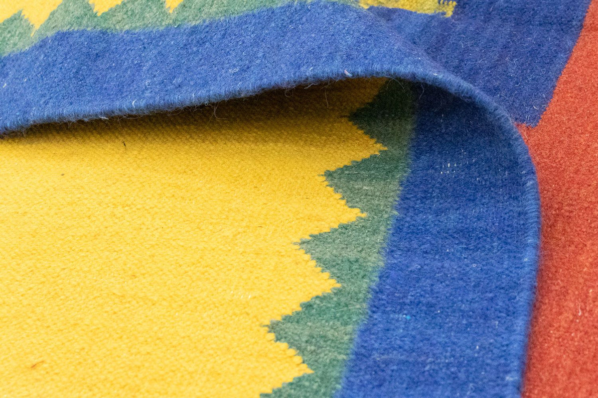 Dieser kunstvolle Kelim - Trendy besticht das Auge mit seinen angesagten Farben. So bringt er eine moderne und harmonische Eleganz in Ihr Wohnambiente mit ein. Kelim Teppiche sind im Gegensatz zu klassischen Orientteppichen in traditioneller Art handgewebt statt geknüpft. In anderen Ländern werden diese Exemplare auch als Kissen oder Vorhänge genutzt. Diese Teppiche haben einen dünnen Flor, für das feste Obergewebe wird 100% Schurwolle verwendet, welche von Natur aus äußerst pflegeleicht und strapazierbar ist. Als echten Kelim bezeichnen Experten nur Teppiche, welche in der Türkei, dem Kaukasusgebiet, Persien, Afghanistan und Turkmenien hergestellt wurden. Echte Teppiche aus dem Orient eben.