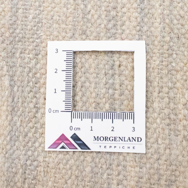 Für diesen Teppich wird ausschließlich handgesponnene Schafwolle verwendet. Durch die sorgfältige, manuelle Verarbeitung bleiben die natürlichen Eigenschaften der Wolle optimal erhalten: Sie ist robust, elastisch und besitzt eine angenehme Weichheit, die man bei jedem Schritt spürt.