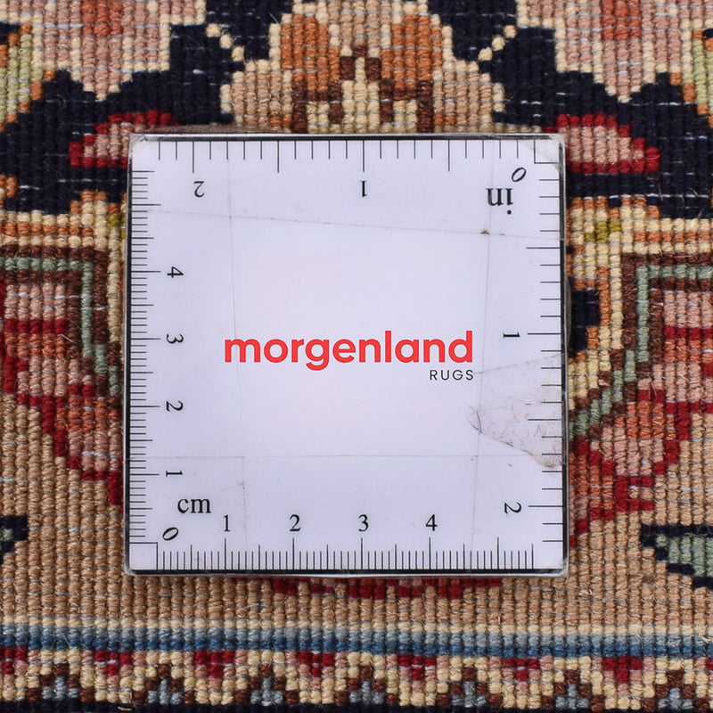 Traditionell von Hand geknüpfte Teppiche gelten nach wie vor als Inbegriff höchster Qualität unter den Teppicharten. Je nach Art der Knoten zeichnen sie sich durch außergewöhnliche Langlebigkeit und Widerstandsfähigkeit aus – oft überdauern sie mehrere Generationen. Die Feinheit der Knüpfung beeinflusst maßgeblich die Darstellung von Ornamenten und Mustern: Je dichter geknüpft, desto detailreicher das Design. Diese Präzision erfordert jedoch nicht nur viel Zeit, sondern auch ein hohes Maß an handwerklichem Geschick und Erfahrung. Die Knotendichte gilt daher als wichtiger Indikator für den Wert eines Teppichs. Dennoch bedeutet eine hohe Knüpfdichte nicht automatisch bessere Qualität – auch Teppiche mit groberer Struktur können hervorragend verarbeitet sein.