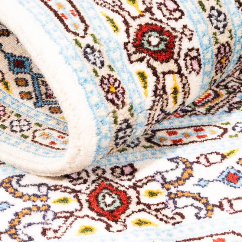 Der handgeknüpfte Teppich aus Moud, einer der größten Städte des Irans, ist ein echtes Kunstwerk. Er wurde aus reiner Naturwolle gefertigt und von erfahrenen Handwerkern sorgfältig geknüpft. Diese hochwertigen Teppiche sind bekannt für ihre außergewöhnlichen Größen und ihre extrem hochwertige Wolle. Neben ihrer Schönheit sind Moud-Teppiche auch äußerst pflegeleicht. Sie können einfach mit einem Staubsauger oder einem Besen gereinigt werden, um Schmutz und Staub zu entfernen. Wenn nötig, kann der Teppich auch mit einem milden Reinigungsmittel und Wasser gereinigt werden. Aufgrund ihrer hohen Qualität und ihrer langlebigen Natur sind Moud-Teppiche eine ausgezeichnete Investition für jeden Teppichliebhaber. Sie sind nicht nur eine schöne Ergänzung für jedes Zuhause, sondern auch eine pflegeleichte und praktische Wahl. Egal, ob Sie sich für einen klassischen oder einen modernen Stil entscheiden, ein Moud-Teppich wird Ihrem Zuhause eine unvergleichliche Eleganz und Stil verleihen.