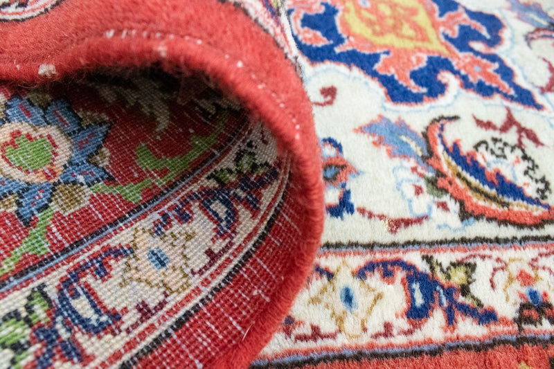 Dieser Atmosphäre schaffende Najafabad ist sorgfältig von Hand geknüpft. Najafabad Teppiche erinnern in den Musterungen stark an Isfahan und klassische Keshan Teppiche. Sie gelten als sehr strapazierfähig und haben meist ein Medaillonmuster in den Farben Rot, Grün, und Blau. Die Teppiche sind in der Regel sehr farbenprächtig und die Wolle ist von guter Qualität. Insgesamt sind es Teppiche von hoher Qualität mit einem unschlagbaren Preis-Leistungsverhältnis. Eine lohnenswerte Investition.