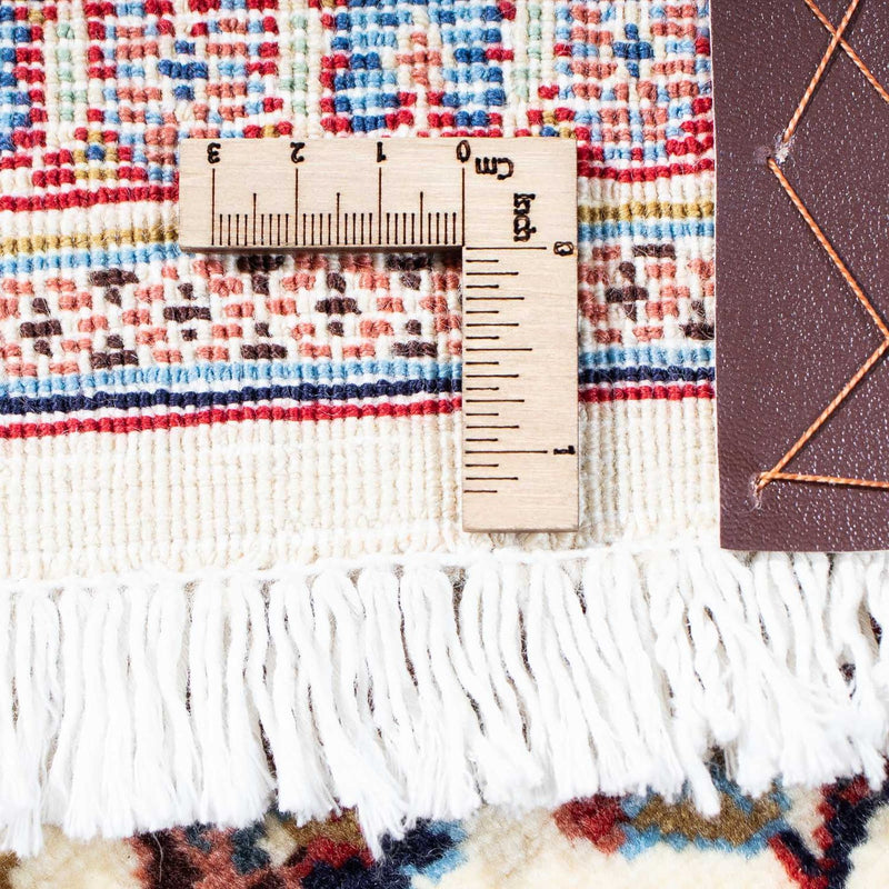 Sarough gehört zu den wichtigsten Teppich-Provenienzen des Iran. Der Sarough verbindet modernes Wohnen mit traditioneller Knüpfkunst. Durch seine robuste Knüpfung ist der Sarough ein strapazierfähiger Teppich mit hoher Schall- und Wärmeisolierung. Die verwendete Wolle hat eine hohe Qualität, ist glänzend und die Teppiche sind robust und strapazierfähig. Die Knüpfungen sind sehr fein und der Flor relativ hoch. Sein zeitloses Design fügt sich problemlos in die Umgebung ein und verleiht ihr ein behagliches Wohngefühl. Heute werden in Sarough Teppiche verschiedenster Qualitäten geknüpft. Die Mustervielfalt der Teppiche gehört zu den reichhaltigsten und traditionellsten des ganzen Orients und kann somit nicht verallgemeinert werden. Bekannt sind sie für Ihre wunderschönen Medaillons, sowie auch für das bekannte durchgemusterte Mir Muster.