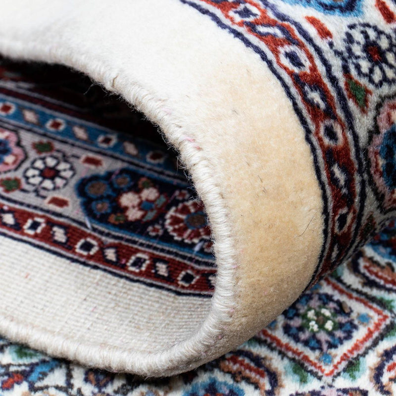 Der handgeknüpfte Teppich aus Moud, einer der größten Städte des Irans, ist ein echtes Kunstwerk. Er wurde aus reiner Naturwolle gefertigt und von erfahrenen Handwerkern sorgfältig geknüpft. Diese hochwertigen Teppiche sind bekannt für ihre außergewöhnlichen Größen und ihre extrem hochwertige Wolle. Neben ihrer Schönheit sind Moud-Teppiche auch äußerst pflegeleicht. Sie können einfach mit einem Staubsauger oder einem Besen gereinigt werden, um Schmutz und Staub zu entfernen. Wenn nötig, kann der Teppich auch mit einem milden Reinigungsmittel und Wasser gereinigt werden. Aufgrund ihrer hohen Qualität und ihrer langlebigen Natur sind Moud-Teppiche eine ausgezeichnete Investition für jeden Teppichliebhaber. Sie sind nicht nur eine schöne Ergänzung für jedes Zuhause, sondern auch eine pflegeleichte und praktische Wahl. Egal, ob Sie sich für einen klassischen oder einen modernen Stil entscheiden, ein Moud-Teppich wird Ihrem Zuhause eine unvergleichliche Eleganz und Stil verleihen.
