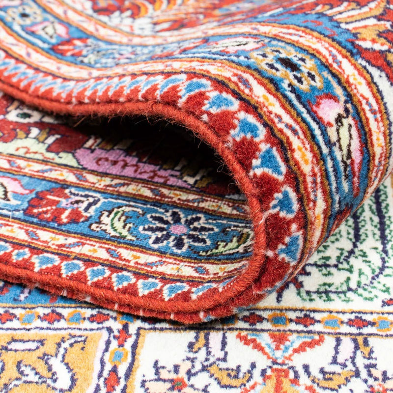 Der handgeknüpfte Teppich aus Moud, einer der größten Städte des Irans, ist ein echtes Kunstwerk. Er wurde aus reiner Naturwolle gefertigt und von erfahrenen Handwerkern sorgfältig geknüpft. Diese hochwertigen Teppiche sind bekannt für ihre außergewöhnlichen Größen und ihre extrem hochwertige Wolle. Neben ihrer Schönheit sind Moud-Teppiche auch äußerst pflegeleicht. Sie können einfach mit einem Staubsauger oder einem Besen gereinigt werden, um Schmutz und Staub zu entfernen. Wenn nötig, kann der Teppich auch mit einem milden Reinigungsmittel und Wasser gereinigt werden. Aufgrund ihrer hohen Qualität und ihrer langlebigen Natur sind Moud-Teppiche eine ausgezeichnete Investition für jeden Teppichliebhaber. Sie sind nicht nur eine schöne Ergänzung für jedes Zuhause, sondern auch eine pflegeleichte und praktische Wahl. Egal, ob Sie sich für einen klassischen oder einen modernen Stil entscheiden, ein Moud-Teppich wird Ihrem Zuhause eine unvergleichliche Eleganz und Stil verleihen.