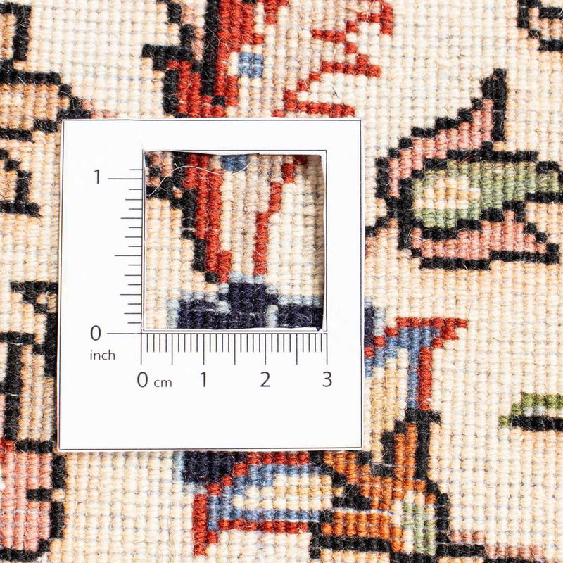 Dieser handgeknüpfte Kaschmar ist ein Beweis echten Könnens. Von Hand geknüpft, mit dem Auge für selbst kleinste Details. Typisch für Kaschmar-Teppiche sind ihre einzigartigen Muster aus Gemälden Bäumen, Blumen, Menschen und Tiere. Zudem sind Darstellungen abgebildet, die historische Ereignisse darstellen, wie z.B. ein wichtiges Ereignis aus der Geschichte Persiens oder einer bekannten historischen Person, oder die Geschichte eines ehrenhaften persischen Königs. Er ist meist nur in Großgrößen erhältlich und erinnert in bestimmten Fällen an klassische Keshan Teppiche mit ihren Medaillons und besonderen Eckmustern.