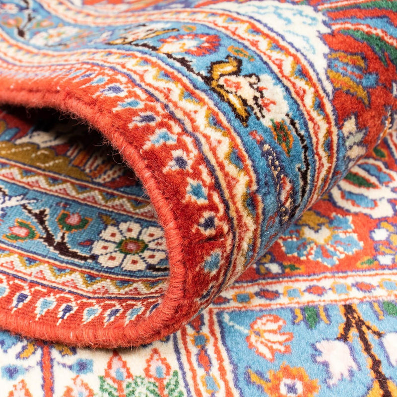 Der handgeknüpfte Teppich aus Moud, einer der größten Städte des Irans, ist ein echtes Kunstwerk. Er wurde aus reiner Naturwolle gefertigt und von erfahrenen Handwerkern sorgfältig geknüpft. Diese hochwertigen Teppiche sind bekannt für ihre außergewöhnlichen Größen und ihre extrem hochwertige Wolle. Neben ihrer Schönheit sind Moud-Teppiche auch äußerst pflegeleicht. Sie können einfach mit einem Staubsauger oder einem Besen gereinigt werden, um Schmutz und Staub zu entfernen. Wenn nötig, kann der Teppich auch mit einem milden Reinigungsmittel und Wasser gereinigt werden. Aufgrund ihrer hohen Qualität und ihrer langlebigen Natur sind Moud-Teppiche eine ausgezeichnete Investition für jeden Teppichliebhaber. Sie sind nicht nur eine schöne Ergänzung für jedes Zuhause, sondern auch eine pflegeleichte und praktische Wahl. Egal, ob Sie sich für einen klassischen oder einen modernen Stil entscheiden, ein Moud-Teppich wird Ihrem Zuhause eine unvergleichliche Eleganz und Stil verleihen.