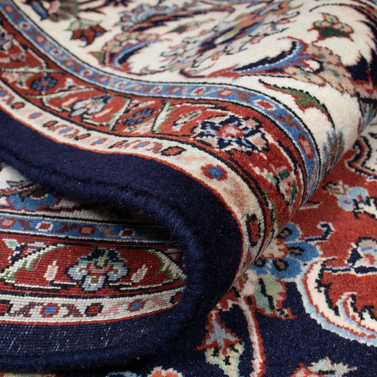 Traditionell von Hand geknüpfte Teppiche gelten nach wie vor als Inbegriff höchster Qualität unter den Teppicharten. Je nach Art der Knoten zeichnen sie sich durch außergewöhnliche Langlebigkeit und Widerstandsfähigkeit aus – oft überdauern sie mehrere Generationen. Die Feinheit der Knüpfung beeinflusst maßgeblich die Darstellung von Ornamenten und Mustern: Je dichter geknüpft, desto detailreicher das Design. Diese Präzision erfordert jedoch nicht nur viel Zeit, sondern auch ein hohes Maß an handwerklichem Geschick und Erfahrung. Die Knotendichte gilt daher als wichtiger Indikator für den Wert eines Teppichs. Dennoch bedeutet eine hohe Knüpfdichte nicht automatisch bessere Qualität – auch Teppiche mit groberer Struktur können hervorragend verarbeitet sein.