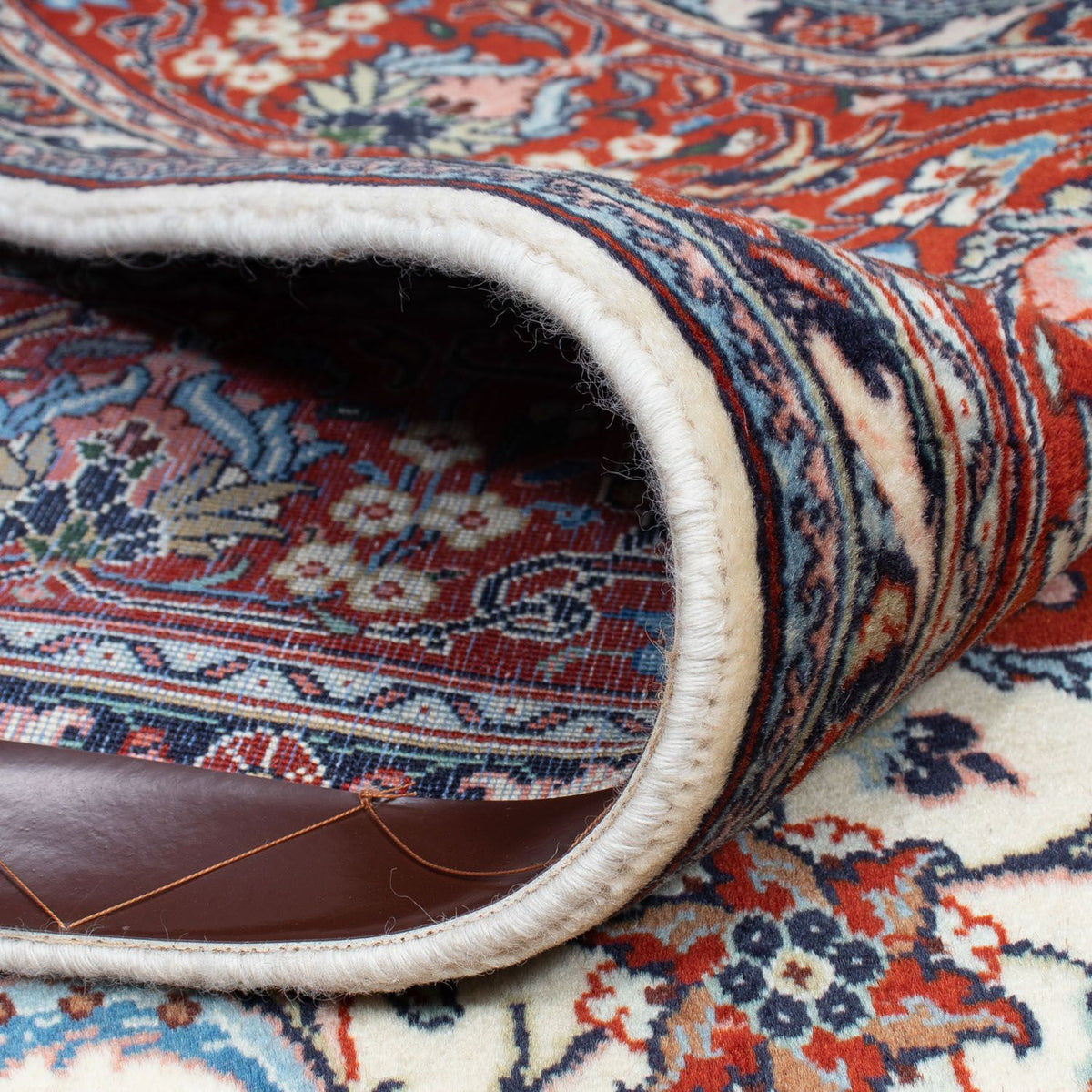 Sarough gehört zu den wichtigsten Teppich-Provenienzen des Iran. Der Sarough verbindet modernes Wohnen mit traditioneller Knüpfkunst. Durch seine robuste Knüpfung ist der Sarough ein strapazierfähiger Teppich mit hoher Schall- und Wärmeisolierung. Die verwendete Wolle hat eine hohe Qualität, ist glänzend und die Teppiche sind robust und strapazierfähig. Die Knüpfungen sind sehr fein und der Flor relativ hoch. Sein zeitloses Design fügt sich problemlos in die Umgebung ein und verleiht ihr ein behagliches Wohngefühl. Heute werden in Sarough Teppiche verschiedenster Qualitäten geknüpft. Die Mustervielfalt der Teppiche gehört zu den reichhaltigsten und traditionellsten des ganzen Orients und kann somit nicht verallgemeinert werden. Bekannt sind sie für Ihre wunderschönen Medaillons, sowie auch für das bekannte durchgemusterte Mir Muster.