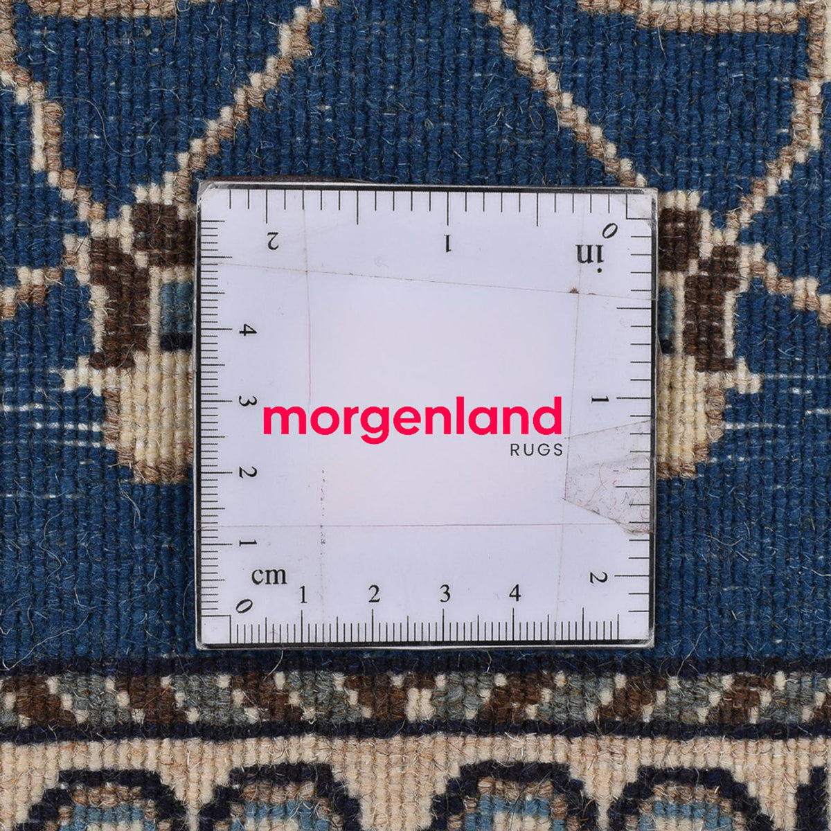 Nain Teppiche werden in hervorragender Feinheit geknüpft. Als Flormaterial wird meist beste, samtartige Korkwolle und immer Seide verwendet, damit eine exakte Musterung von Medaillons und All-Over-Musterung ausgeführt werden kann. Man unterscheidet den Nain in 4 Qualitätsstufen, die in „La“ angegeben werden. 4La, 6La, 9La, 12La. Dies ist eine Qualitätsbezeichnung und bezieht sich auf die Anzahl der Faden Schichten, die in jedem Kettfäden enthalten sind. Je geringerer die angegebene Zahl ist, desto höher die Knotendichte, desto feiner und dichter ist der Teppich. Nains gehören zu den Schönsten auf der Welt. Sie sind auch bei Sammlern sehr beliebt. Durch ihre schlichte Eleganz passen Nains auch in moderne Einrichtungen und bringen Luxus ins Haus.