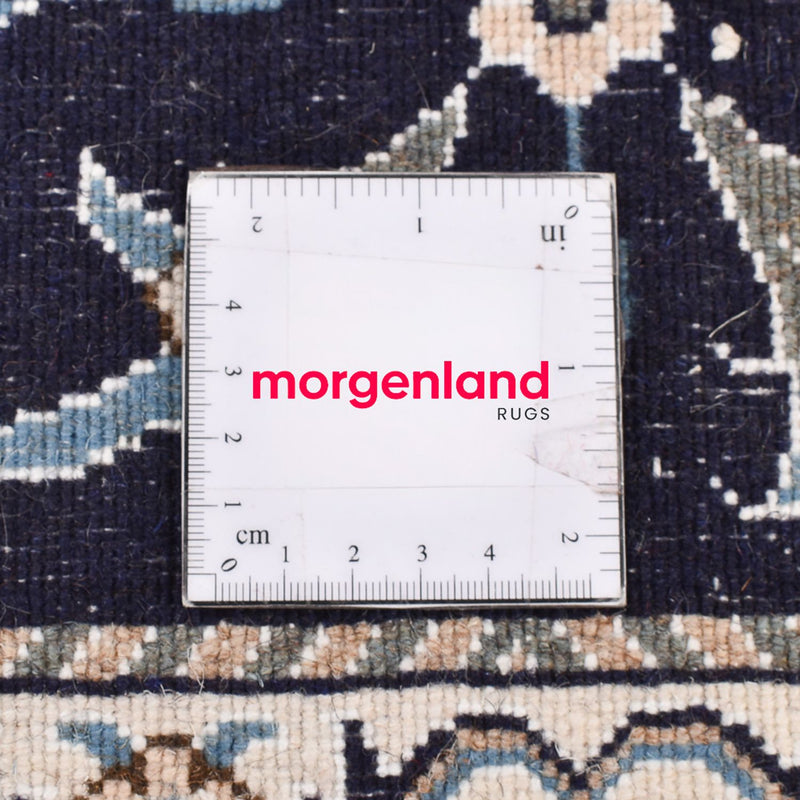 Nain Teppiche werden in hervorragender Feinheit geknüpft. Als Flormaterial wird meist beste, samtartige Korkwolle und immer Seide verwendet, damit eine exakte Musterung von Medaillons und All-Over-Musterung ausgeführt werden kann. Man unterscheidet den Nain in 4 Qualitätsstufen, die in „La“ angegeben werden. 4La, 6La, 9La, 12La. Dies ist eine Qualitätsbezeichnung und bezieht sich auf die Anzahl der Faden Schichten, die in jedem Kettfäden enthalten sind. Je geringerer die angegebene Zahl ist, desto höher die Knotendichte, desto feiner und dichter ist der Teppich. Nains gehören zu den Schönsten auf der Welt. Sie sind auch bei Sammlern sehr beliebt. Durch ihre schlichte Eleganz passen Nains auch in moderne Einrichtungen und bringen Luxus ins Haus.
