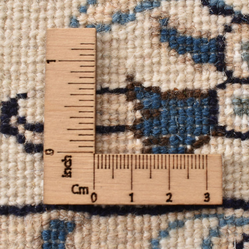 Nain Teppiche werden in hervorragender Feinheit geknüpft. Als Flormaterial wird meist beste, samtartige Korkwolle und immer Seide verwendet, damit eine exakte Musterung von Medaillons und All-Over-Musterung ausgeführt werden kann. Man unterscheidet den Nain in 4 Qualitätsstufen, die in „La“ angegeben werden. 4La, 6La, 9La, 12La. Dies ist eine Qualitätsbezeichnung und bezieht sich auf die Anzahl der Faden Schichten, die in jedem Kettfäden enthalten sind. Je geringerer die angegebene Zahl ist, desto höher die Knotendichte, desto feiner und dichter ist der Teppich. Nains gehören zu den Schönsten auf der Welt. Sie sind auch bei Sammlern sehr beliebt. Durch ihre schlichte Eleganz passen Nains auch in moderne Einrichtungen und bringen Luxus ins Haus.