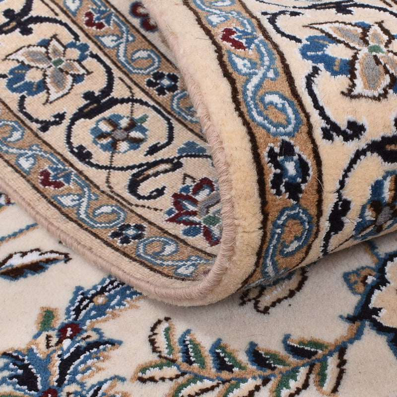 Dieser fein von Hand geknüpfte Nain 9La passt sich perfekt in Ihrem Zuhause an. Er besteht aus Korkwolle und feinster Seide, wodurch er sich besonders weich unter den Füßen anfühlt und durch seinen Glanz eine luxuriöse Atmosphäre schafft. Der Perserteppich – Nain – Royal gehört zu der hohen Qualitätsstufe 3 mit circa 250.000 bis 360.000 Knoten pro Quadratmeter. Das heißt, dass er sehr dicht ist und so eine Langlebigkeit garantiert. Egal, welchen Einrichtungsstil sie bei sich im Haus bevorzugen – mit einem Nain Teppich treffen Sie immer die richtige Wahl.