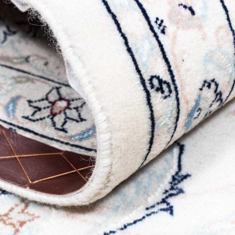 Dieser fein von Hand geknüpfte Nain 9La passt sich perfekt in Ihrem Zuhause an. Er besteht aus Korkwolle und feinster Seide, wodurch er sich besonders weich unter den Füßen anfühlt und durch seinen Glanz eine luxuriöse Atmosphäre schafft. Der Perserteppich – Nain – Royal gehört zu der hohen Qualitätsstufe 3 mit circa 250.000 bis 360.000 Knoten pro Quadratmeter. Das heißt, dass er sehr dicht ist und so eine Langlebigkeit garantiert. Egal, welchen Einrichtungsstil sie bei sich im Haus bevorzugen – mit einem Nain Teppich treffen Sie immer die richtige Wahl.