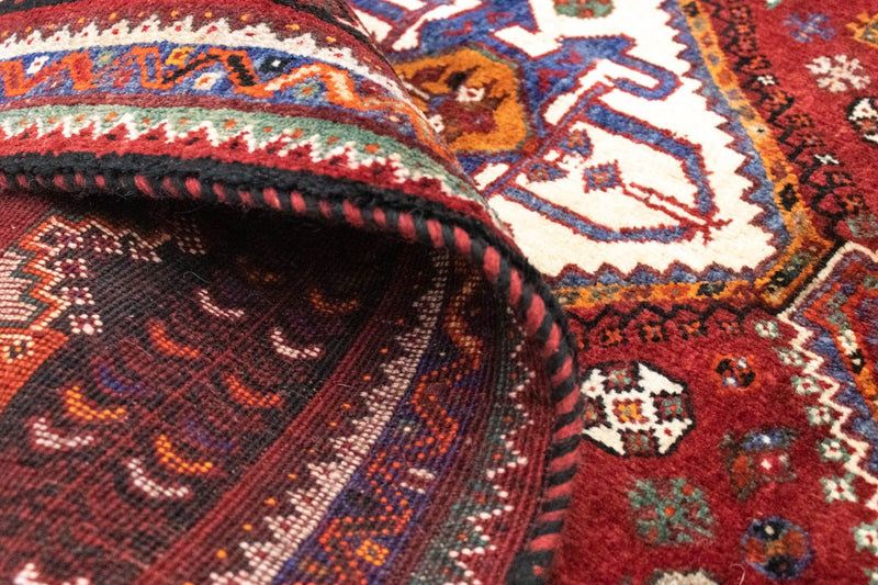 Ghashghai-Teppiche werden als König unter den persischen Nomadenteppichen bezeichnet. Für Nomadenteppiche sind sie sehr dicht geknüpft und die Motive gehören zu den spannendsten und variationsreichsten bei Teppichen, die von Nomaden geknüpft wurden. Ein Großteil der Ghashghai- Teppiche zeigt das geometrische Muster, ein rautenförmiges Mittelfeld mit einem eher schlichten Medaillon. Das Innenfeld ist mit ungewöhnlich vielen Ornamenten gefüllt, oft auch mit figurativen Motiven. Die handversponnene Wolle ist mittelhoch und besticht durch ihre natürlich wirkende Art. Als Farben werden ausschließlich Naturfarben eingesetzt. Diese Teppiche werden aus dem Gedächtnis geknüpft, da die Muster- und Farbkombinationen ausschließlich aus dem Bauch heraus entstehen. Sie weisen wegen ihrer hohen Qualität ein sehr gutes Preis-Leistungsverhältnis auf.