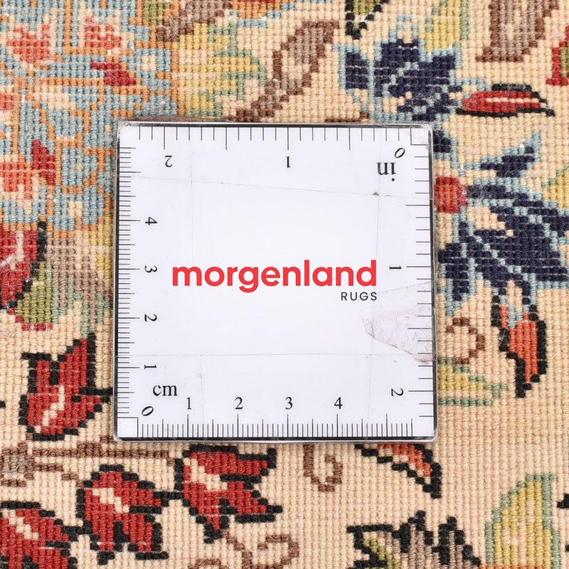 Traditionell von Hand geknüpfte Teppiche gelten nach wie vor als Inbegriff höchster Qualität unter den Teppicharten. Je nach Art der Knoten zeichnen sie sich durch außergewöhnliche Langlebigkeit und Widerstandsfähigkeit aus – oft überdauern sie mehrere Generationen. Die Feinheit der Knüpfung beeinflusst maßgeblich die Darstellung von Ornamenten und Mustern: Je dichter geknüpft, desto detailreicher das Design. Diese Präzision erfordert jedoch nicht nur viel Zeit, sondern auch ein hohes Maß an handwerklichem Geschick und Erfahrung. Die Knotendichte gilt daher als wichtiger Indikator für den Wert eines Teppichs. Dennoch bedeutet eine hohe Knüpf­dichte nicht automatisch bessere Qualität – auch Teppiche mit groberer Struktur können hervorragend verarbeitet sein.