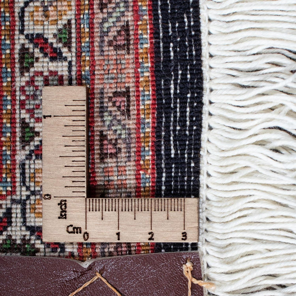 Der Täbriz gehört zu den schönsten seiner Klasse. Diese Teppiche begründeten den guten Ruf der persischen Knüpfkunst. Er ist ein sehr beliebter Teppich aus eines der besten Knüpfgebiete Persiens. Sie haben oft ein großes, zentral platziertes Medaillon aus schönen Blumenmotiven, ein typisch orientalisches Motiv. Täbriz-Teppiche haben häufig die zusätzliche Bezeichnung Raj. Man unterscheidet zwischen 40, 50, 60, 70, 80 Raj. Je höher die angegebene Zahl ist, desto feiner und dichter ist der Teppich geknüpft. Raj ist eine Qualitätsbezeichnung und bezieht sich auf die Anzahl der Knoten auf einer Breite von ca. 70 mm. Aufgrund der dichten Knüpfung und dem kurzen Flor ist der Teppich strapazierfähig, unempfindlich und auch für extreme Benutzung gut geeignet.