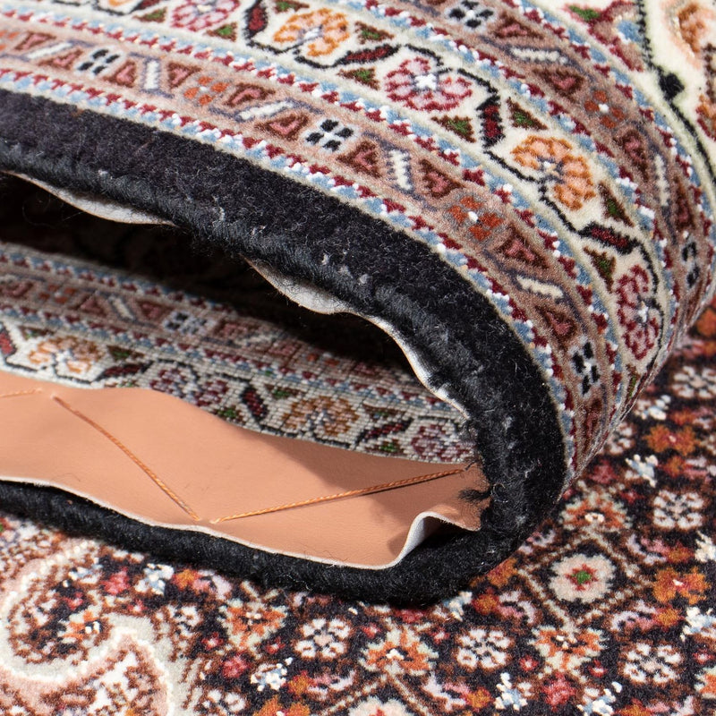 Der Täbriz gehört zu den schönsten seiner Klasse. Diese Teppiche begründeten den guten Ruf der persischen Knüpfkunst. Er ist ein sehr beliebter Teppich aus eines der besten Knüpfgebiete Persiens. Sie haben oft ein großes, zentral platziertes Medaillon aus schönen Blumenmotiven, ein typisch orientalisches Motiv. Täbriz-Teppiche haben häufig die zusätzliche Bezeichnung Raj. Man unterscheidet zwischen 40, 50, 60, 70, 80 Raj. Je höher die angegebene Zahl ist, desto feiner und dichter ist der Teppich geknüpft. Raj ist eine Qualitätsbezeichnung und bezieht sich auf die Anzahl der Knoten auf einer Breite von ca. 70 mm. Aufgrund der dichten Knüpfung und dem kurzen Flor ist der Teppich strapazierfähig, unempfindlich und auch für extreme Benutzung gut geeignet.
