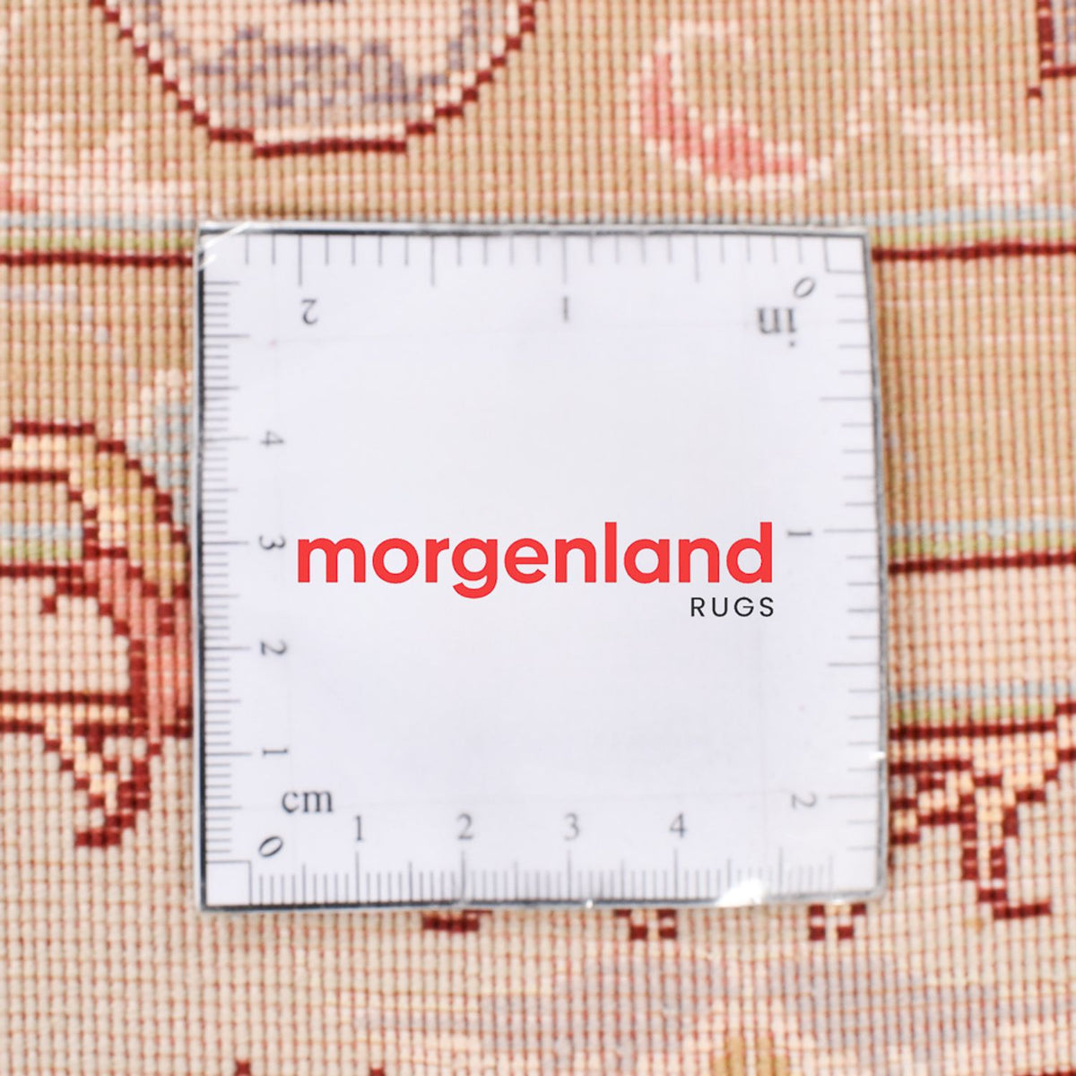 Dieser fein geknüpfte Perserteppich - Täbriz – Royal ist mit hochwertiger Korkwolle, in sorgfältiger und fehlerfreier Handarbeit gefertigt. Der Täbriz 40 Raj gehört zu den schönsten seiner Klasse. Diese Teppiche begründeten den guten Ruf der persischen Knüpfkunst. Er ist ein sehr beliebter Teppich aus einem der besten Knüpfgebiete Persiens. Sie haben oft ein großes, zentral platziertes Medaillon aus schönen Blumenmotiven, ein typisch orientalisches Motiv. Täbriz-Teppiche haben häufig die zusätzliche Bezeichnung Raj. Man unterscheidet zwischen 40, 50, 60, 70, 80 Raj. Je höher die angegebene Zahl ist, desto feiner und dichter ist der Teppich geknüpft. Raj ist eine Qualitätsbezeichnung und bezieht sich auf die Anzahl der Knoten auf einer Breite von ca. 70 mm. Aufgrund der dichten Knüpfung ist der Teppich strapazierfähig, unempfindlich und auch für extreme Benutzung gut geeignet. Klassische Eleganz und Farb-Opulenz zeichnen diesen edlen Teppich aus.