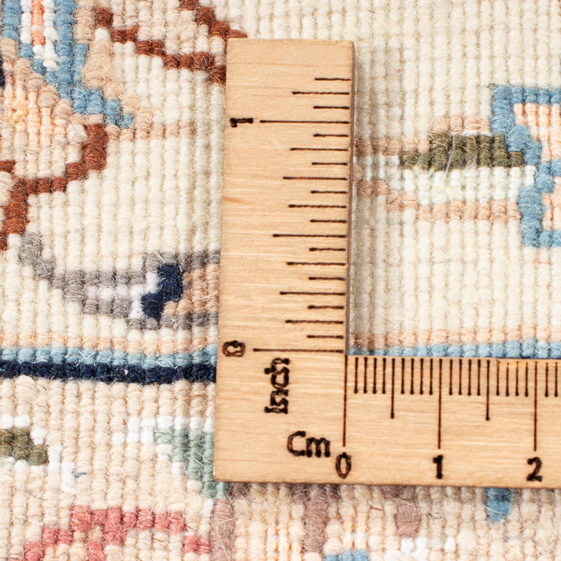Dieser fein geknüpfte Perserteppich - Täbriz – Royal ist mit hochwertiger Korkwolle, in sorgfältiger und fehlerfreier Handarbeit gefertigt. Der Täbriz 40 Raj gehört zu den schönsten seiner Klasse. Diese Teppiche begründeten den guten Ruf der persischen Knüpfkunst. Er ist ein sehr beliebter Teppich aus einem der besten Knüpfgebiete Persiens. Sie haben oft ein großes, zentral platziertes Medaillon aus schönen Blumenmotiven, ein typisch orientalisches Motiv. Täbriz-Teppiche haben häufig die zusätzliche Bezeichnung Raj. Man unterscheidet zwischen 40, 50, 60, 70, 80 Raj. Je höher die angegebene Zahl ist, desto feiner und dichter ist der Teppich geknüpft. Raj ist eine Qualitätsbezeichnung und bezieht sich auf die Anzahl der Knoten auf einer Breite von ca. 70 mm. Aufgrund der dichten Knüpfung ist der Teppich strapazierfähig, unempfindlich und auch für extreme Benutzung gut geeignet. Klassische Eleganz und Farb-Opulenz zeichnen diesen edlen Teppich aus.