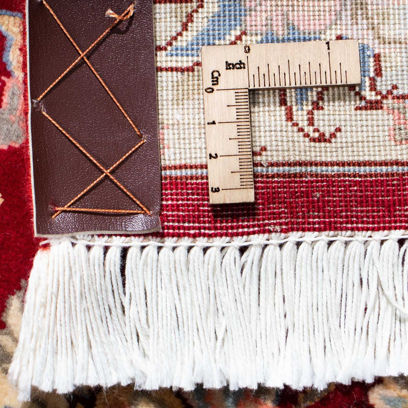 Dieser fein geknüpfte Perserteppich - Täbriz – Royal ist mit hochwertiger Korkwolle, in sorgfältiger und fehlerfreier Handarbeit gefertigt. Der Täbriz 40 Raj gehört zu den schönsten seiner Klasse. Diese Teppiche begründeten den guten Ruf der persischen Knüpfkunst. Er ist ein sehr beliebter Teppich aus einem der besten Knüpfgebiete Persiens. Sie haben oft ein großes, zentral platziertes Medaillon aus schönen Blumenmotiven, ein typisch orientalisches Motiv. Täbriz-Teppiche haben häufig die zusätzliche Bezeichnung Raj. Man unterscheidet zwischen 40, 50, 60, 70, 80 Raj. Je höher die angegebene Zahl ist, desto feiner und dichter ist der Teppich geknüpft. Raj ist eine Qualitätsbezeichnung und bezieht sich auf die Anzahl der Knoten auf einer Breite von ca. 70 mm. Aufgrund der dichten Knüpfung ist der Teppich strapazierfähig, unempfindlich und auch für extreme Benutzung gut geeignet. Klassische Eleganz und Farb-Opulenz zeichnen diesen edlen Teppich aus.