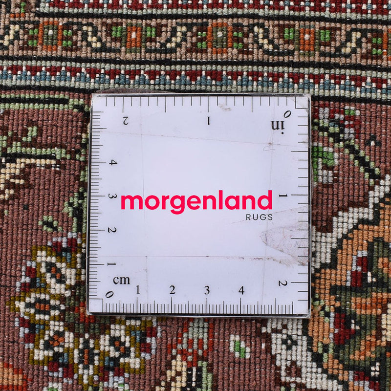Dieser fein geknüpfte Perserteppich - Täbriz – Royal ist mit hochwertiger Korkwolle, in sorgfältiger und fehlerfreier Handarbeit gefertigt. Der Täbriz 40 Raj gehört zu den schönsten seiner Klasse. Diese Teppiche begründeten den guten Ruf der persischen Knüpfkunst. Er ist ein sehr beliebter Teppich aus einem der besten Knüpfgebiete Persiens. Sie haben oft ein großes, zentral platziertes Medaillon aus schönen Blumenmotiven, ein typisch orientalisches Motiv. Täbriz-Teppiche haben häufig die zusätzliche Bezeichnung Raj. Man unterscheidet zwischen 40, 50, 60, 70, 80 Raj. Je höher die angegebene Zahl ist, desto feiner und dichter ist der Teppich geknüpft. Raj ist eine Qualitätsbezeichnung und bezieht sich auf die Anzahl der Knoten auf einer Breite von ca. 70 mm. Aufgrund der dichten Knüpfung ist der Teppich strapazierfähig, unempfindlich und auch für extreme Benutzung gut geeignet. Klassische Eleganz und Farb-Opulenz zeichnen diesen edlen Teppich aus.