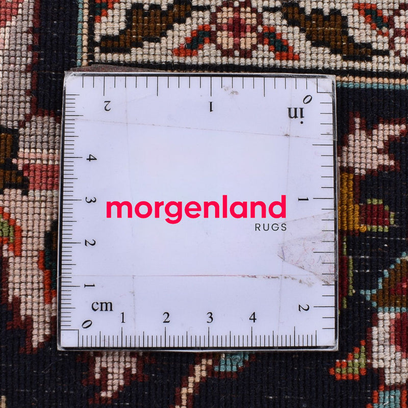 Dieser fein geknüpfte Perserteppich - Täbriz – Royal ist mit hochwertiger Korkwolle, in sorgfältiger und fehlerfreier Handarbeit gefertigt. Der Täbriz 40 Raj gehört zu den schönsten seiner Klasse. Diese Teppiche begründeten den guten Ruf der persischen Knüpfkunst. Er ist ein sehr beliebter Teppich aus einem der besten Knüpfgebiete Persiens. Sie haben oft ein großes, zentral platziertes Medaillon aus schönen Blumenmotiven, ein typisch orientalisches Motiv. Täbriz-Teppiche haben häufig die zusätzliche Bezeichnung Raj. Man unterscheidet zwischen 40, 50, 60, 70, 80 Raj. Je höher die angegebene Zahl ist, desto feiner und dichter ist der Teppich geknüpft. Raj ist eine Qualitätsbezeichnung und bezieht sich auf die Anzahl der Knoten auf einer Breite von ca. 70 mm. Aufgrund der dichten Knüpfung ist der Teppich strapazierfähig, unempfindlich und auch für extreme Benutzung gut geeignet. Klassische Eleganz und Farb-Opulenz zeichnen diesen edlen Teppich aus.