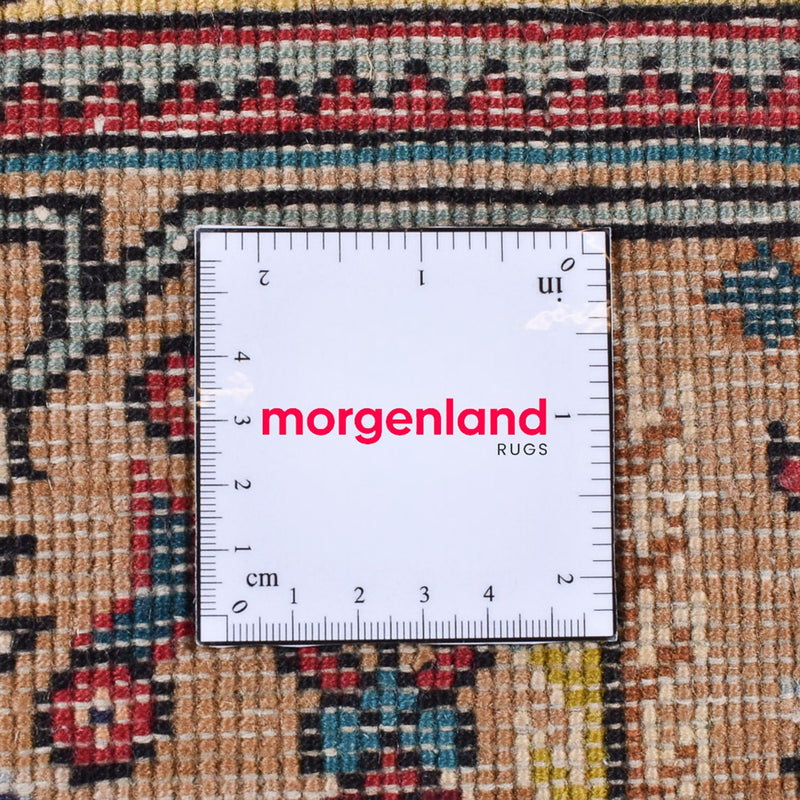 Die handgesponnene Wolle verleiht dem Teppich eine einzigartige, leicht strukturierte Oberfläche mit dezentem Glanz – ein Zeichen echter Handwerkskunst. Gleichzeitig wirkt das Material temperaturausgleichend, schmutzabweisend und sorgt für ein behagliches Raumklima.