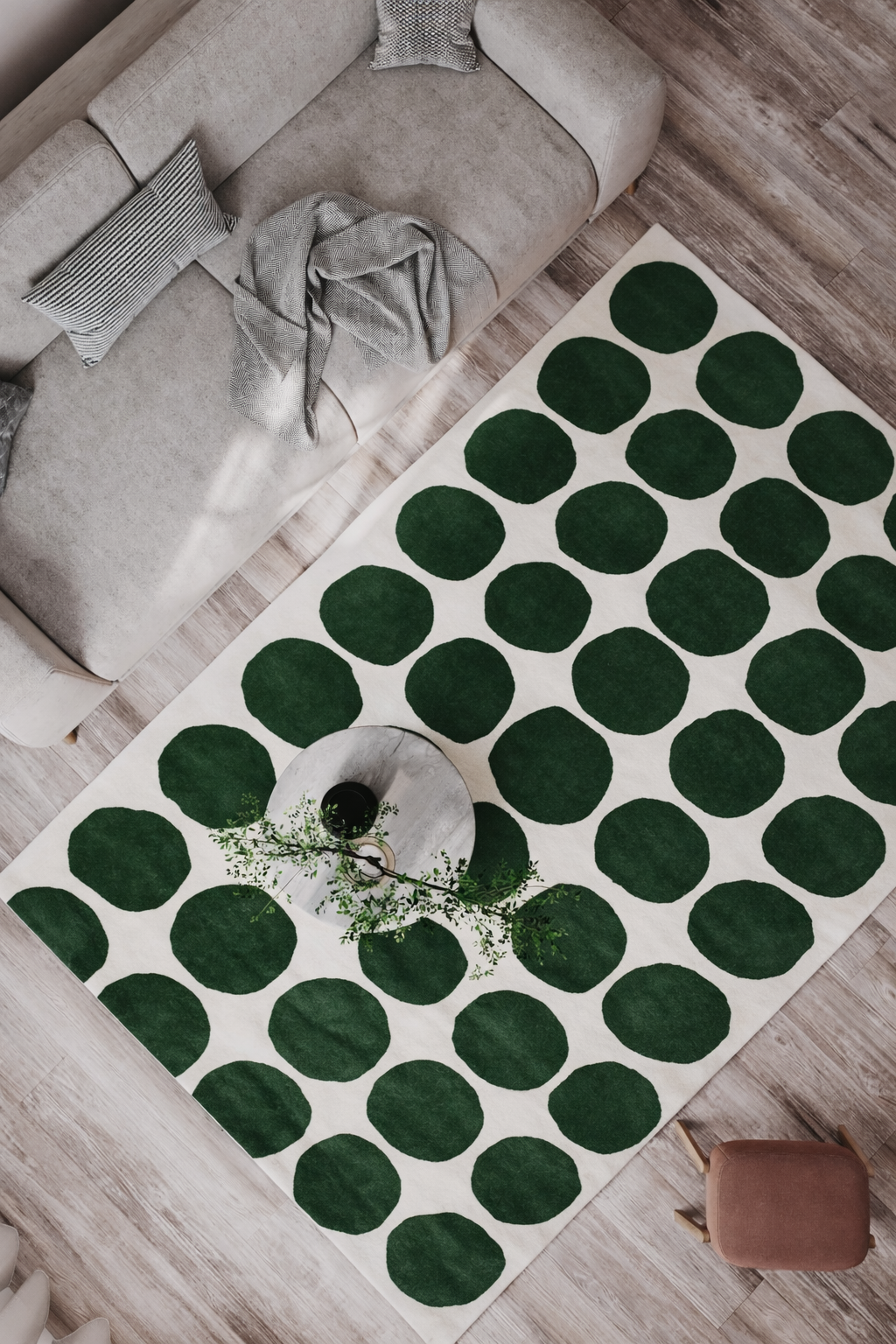 Das Muster von RockRhythm basiert auf einer ruhigen, wiederkehrenden Anordnung abgerundeter Elemente, die sich gleichmäßig über die Teppichfläche verteilen. Diese Komposition wirkt bewusst geordnet, dabei aber organisch genug, um dem Raum eine natürliche Leichtigkeit zu verleihen. Die klar definierten Formen schaffen ein grafisches Gesamtbild, das zeitgemäß wirkt und dennoch über eine subtile, fast meditative Ausstrahlung verfügt.