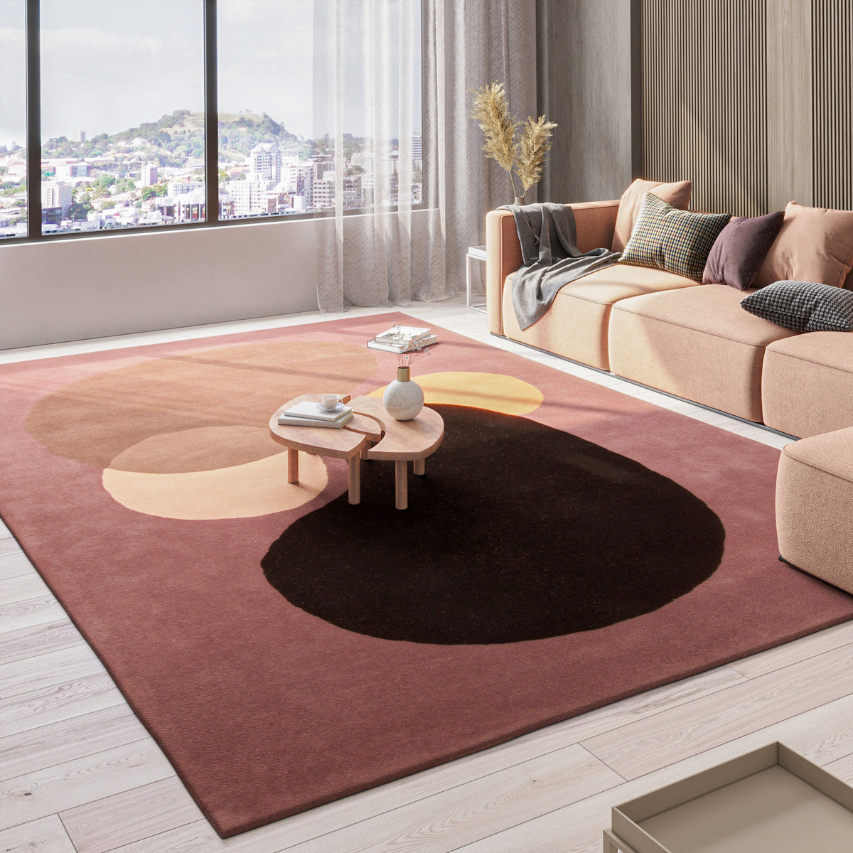 Die handgesponnene Wolle verleiht dem Teppich eine einzigartige, leicht strukturierte Oberfläche mit dezentem Glanz – ein Zeichen echter Handwerkskunst. Gleichzeitig wirkt das Material temperaturausgleichend, schmutzabweisend und sorgt für ein behagliches Raumklima.